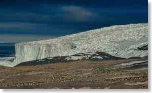 Sitting on the push ice, that icy margin which forms an interface between the watery world of the Adélie penguin's food supply and the land on which it must breed, I still struggle to understand why the penguins should go away for so long to feed during the incubation period. However, as I watch a group of penguins leap ashore from a calm blue sea, a sea scattered with ice floes and the sun's reflections - while beyond, there is every mountain that you should ever hope to see - I begin to understand why they come back.
